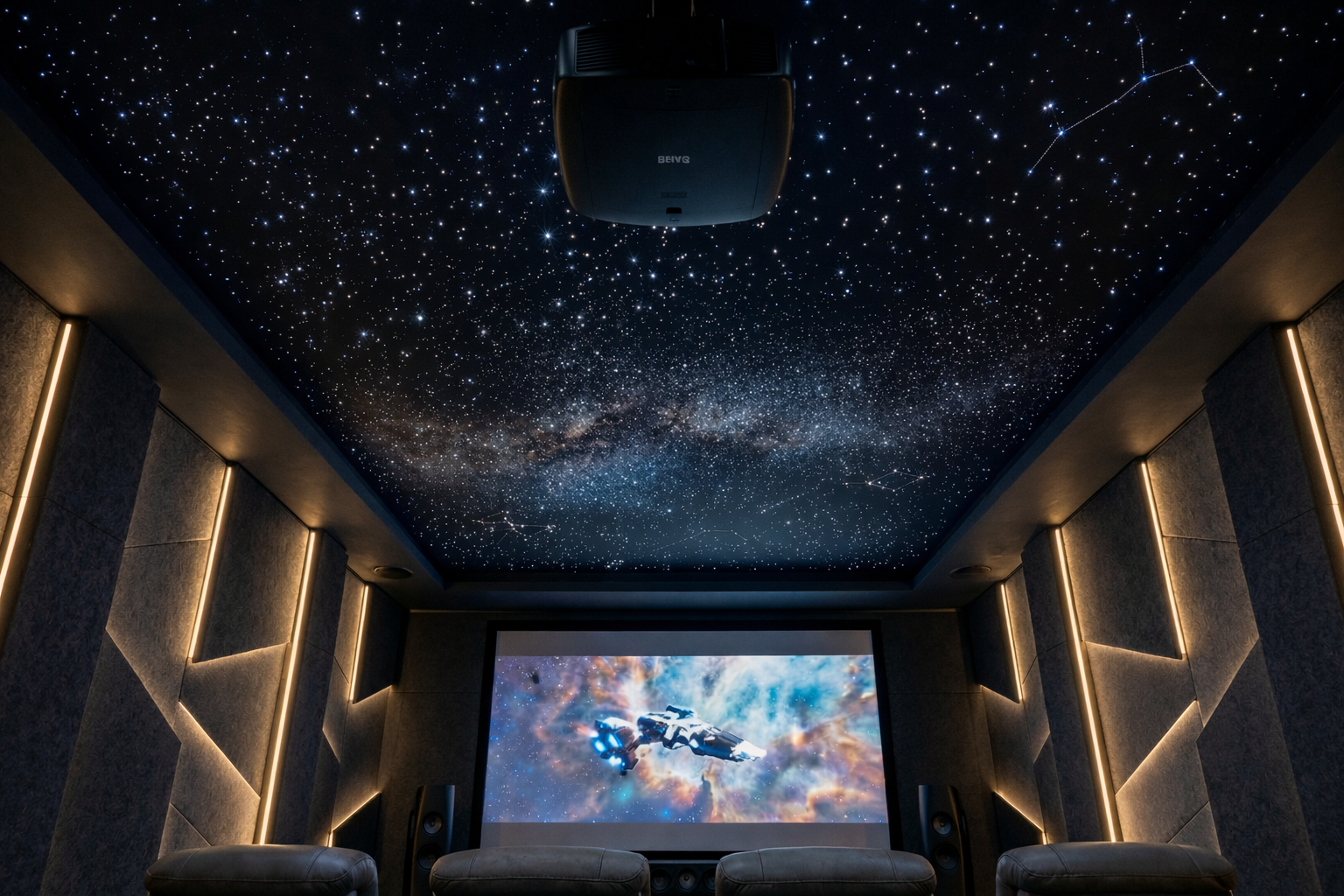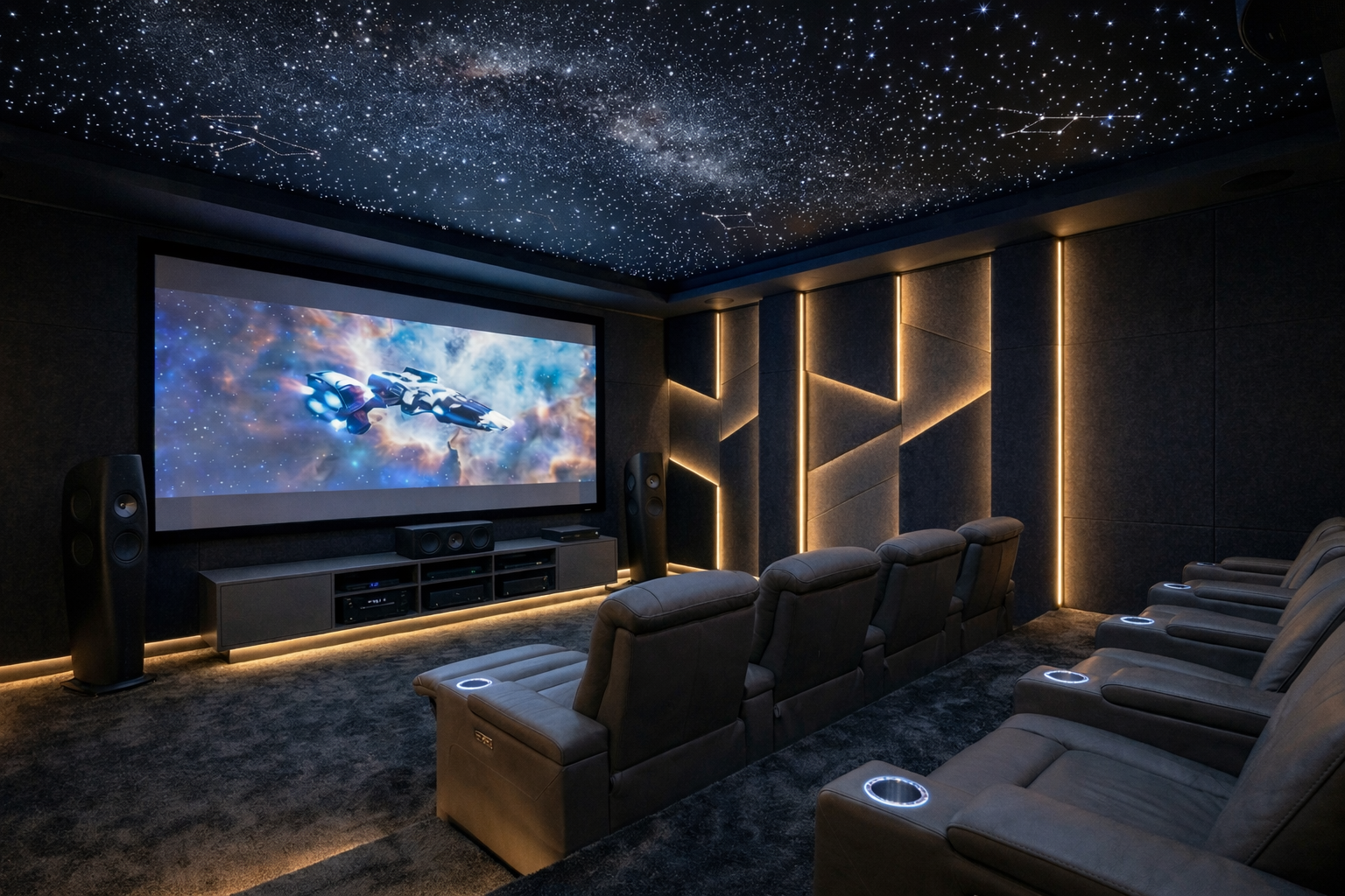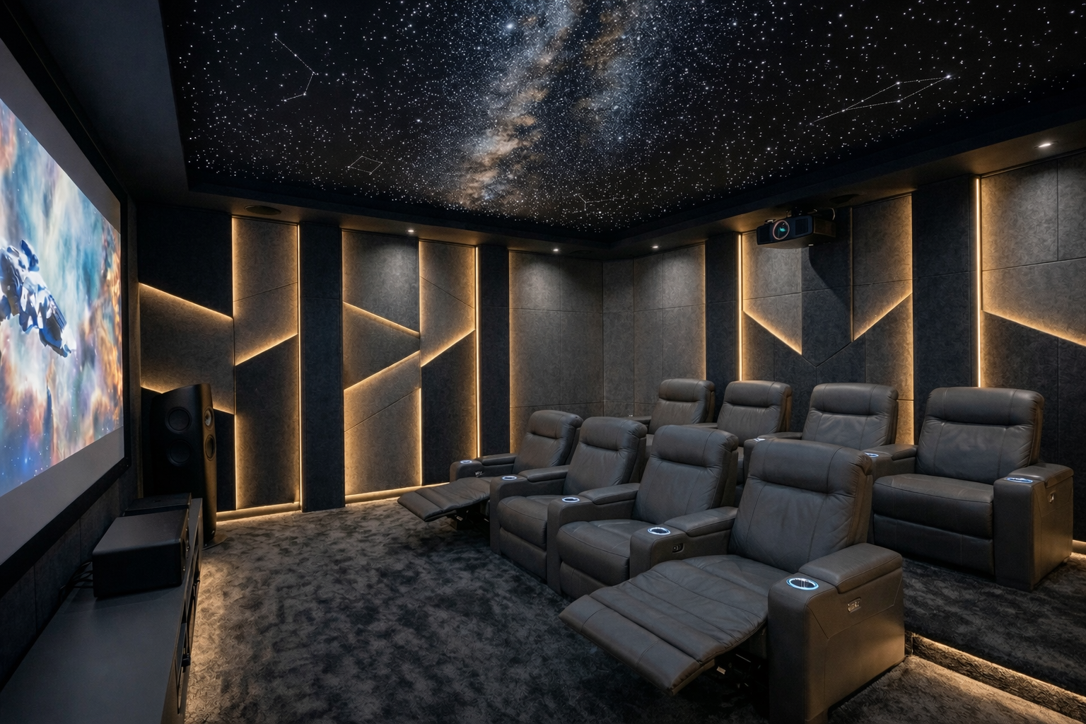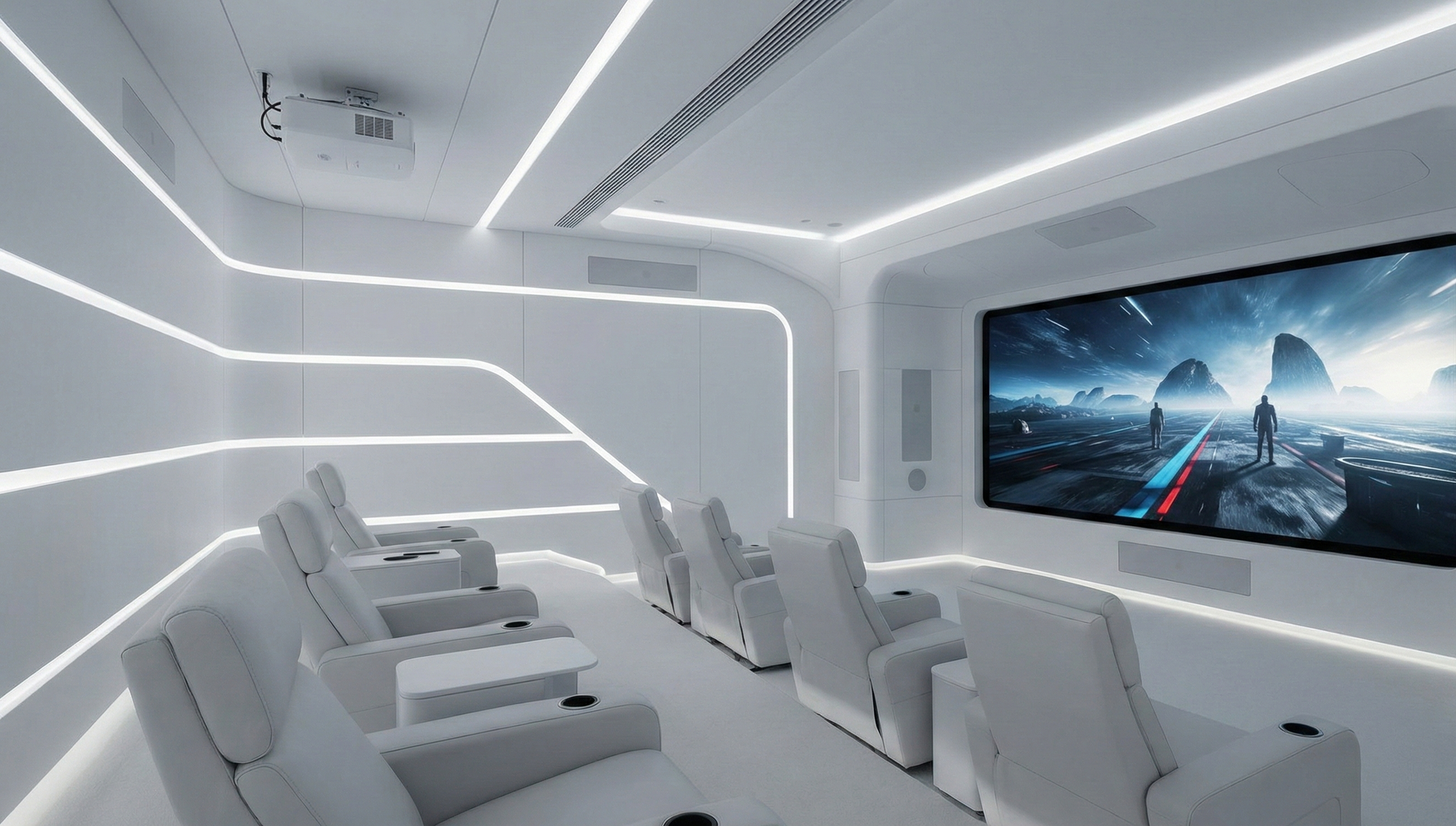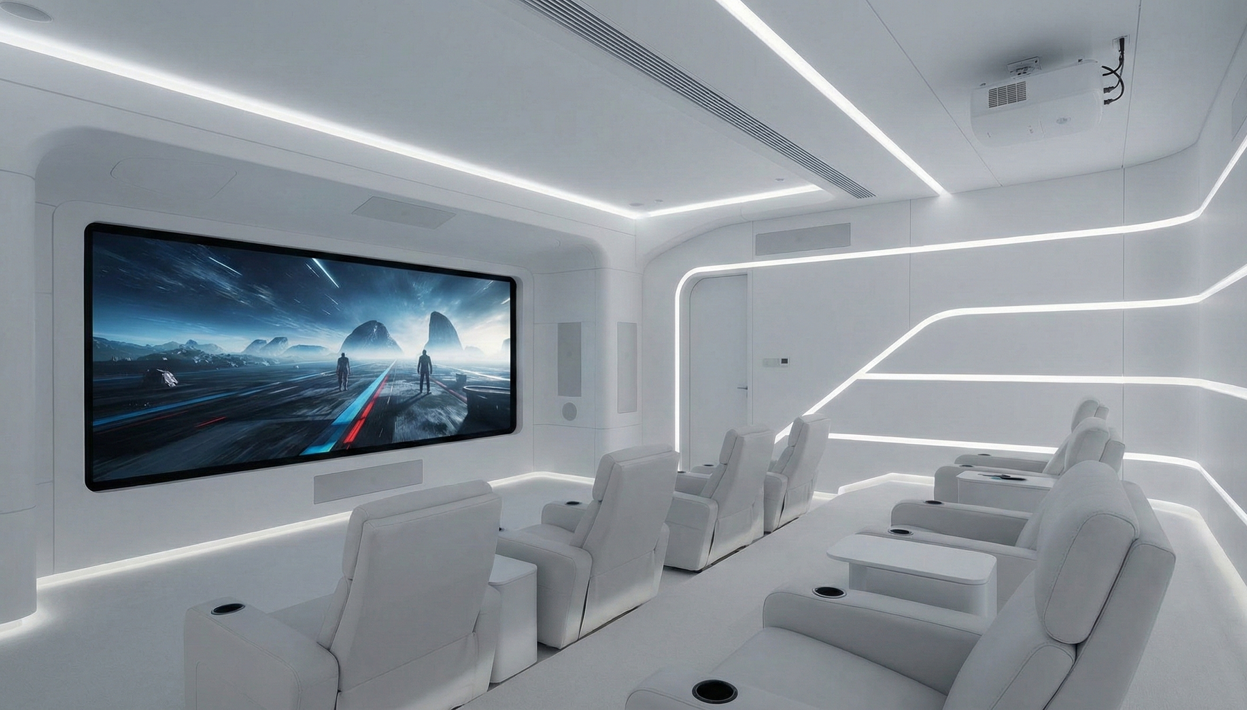 Significa un percorso completo: consulenza e sopralluogo, progetto interior + tecnico, coordinamento delle lavorazioni, installazione impianti e consegna con calibrazione e collaudo. L’obiettivo è che la sala sia pronta da vivere, ordinata e coerente, senza compromessi tra estetica e prestazione.